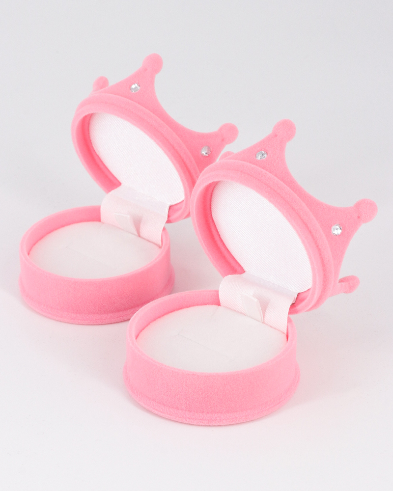 Футляр в форме короны из серии «Романтика» выполнен из флокированного пластика с бархатистой поверхностью и выглядит как небольшая декоративная корона‑шкатулка. Внутренний ложемент рассчитан на размещение кольца, серёг или подвески, поэтому футляр подойдёт для эффектной подачи украшений, романтических подарков и оформления витрин ювелирных магазинов. Прочная конструкция корпуса помогает зафиксировать изделие и защитить его при хранении и транспортировке. Футляр доступен к заказу поштучно и в оптовой фасовке по 12 штук.