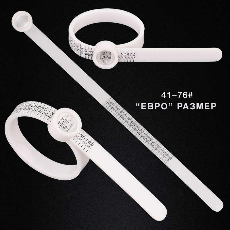 Диапазон измерений составляет 41–76 мм в формате «евро размеры» (длина окружности). Для перевода в российскую шкалу достаточно разделить значение на 6,3. Наличие встроенной лупы облегчает чтение шкалы и повышает точность измерений.