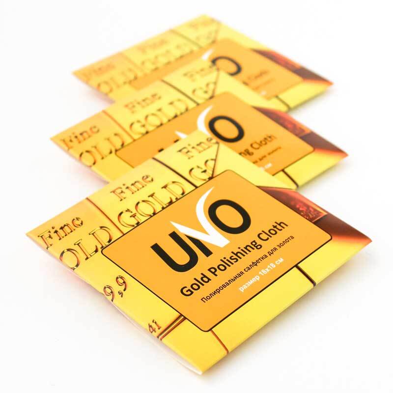 Полировальная салфетка UNO Gold Polishing Cloth размером 18×18 см предназначена для ухода за ювелирными украшениями из золота. Она эффективно удаляет налёт, следы загрязнений и потускнение, возвращая изделиям зеркальный блеск и сияние. Благодаря увеличенному размеру 18×18 см салфетка удобна для работы с кольцами, серьгами, браслетами, цепочками и более крупными украшениями. Подходит для регулярного применения дома, а также в ювелирных магазинах. Часто используется как практичный подарок при продаже украшений.